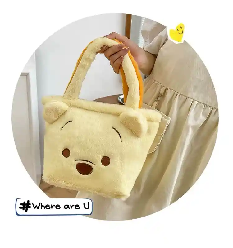 bolso de mano de Winnie the Pooh, bolsa de almuerzo Kawaii