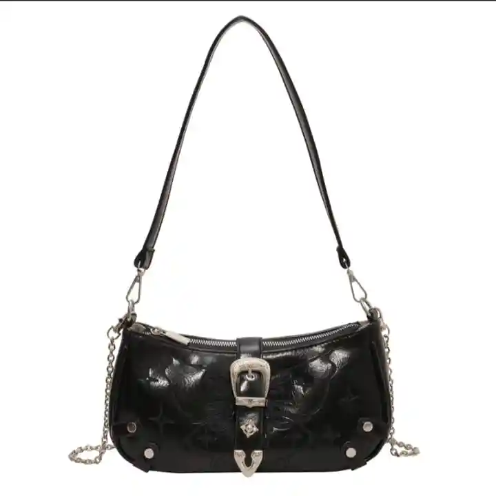 Un bolso de mano negro es un accesorio clásico y versátil que añade un toque de elegancia y sofisticación a cualquier atuendo. Ideal tanto para el uso diario como para ocasiones especiales, este tipo de bolso es una pieza esencial en cualquier guardarropa debido a su estilo atemporal y funcionalidad. Ademas de esto trae un toque unico y distintivo como lo es un estampado de mariposa y una correa que hara de este un bolso unico y llamativo.