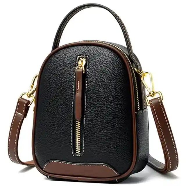 Bolso mini, ajustable para cargar celular, llaves, documentos. 15 cm ancho 18 cm alto color: combinado material: cuero vegano facil limpieza