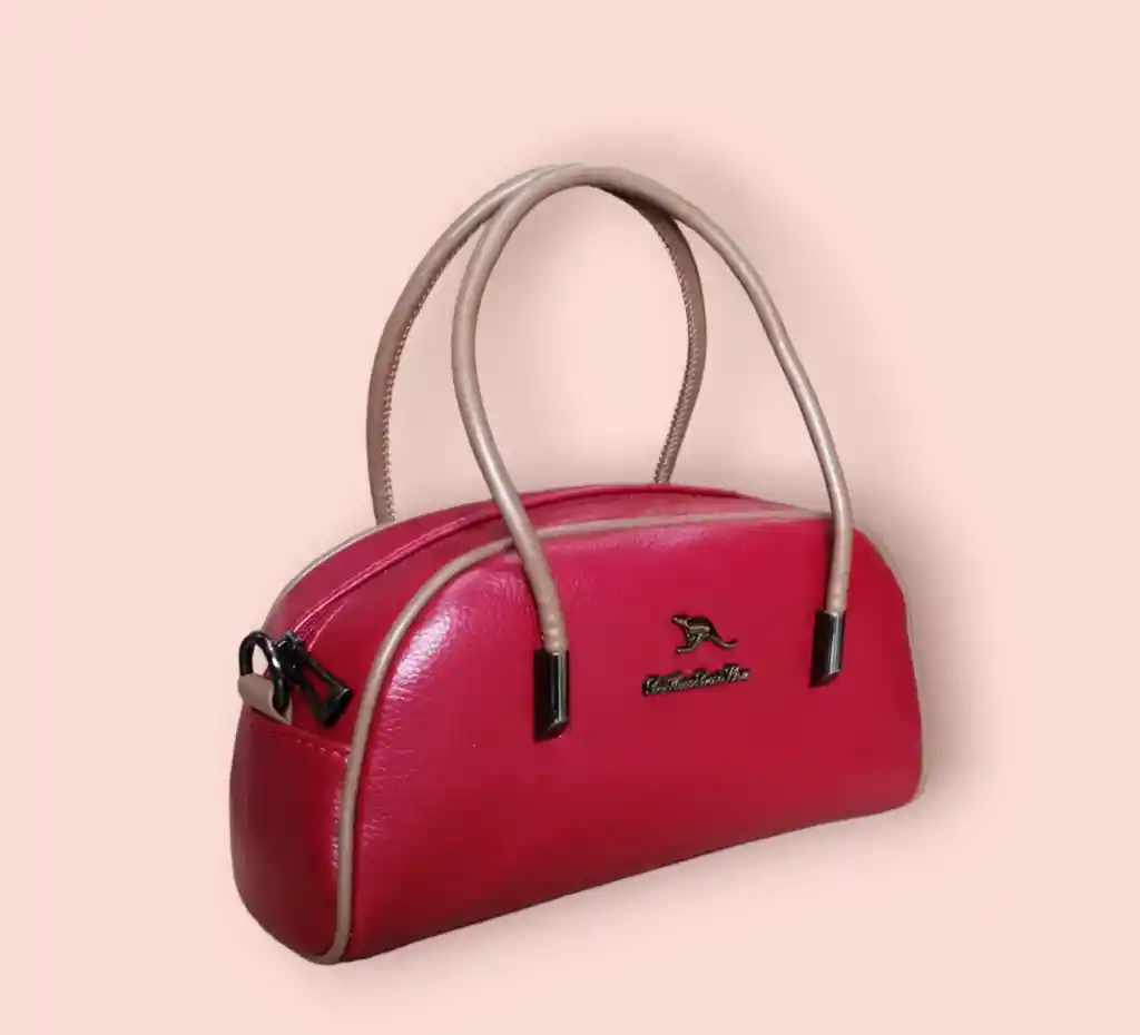 Bolso pequeño de mano y con correa ajustable, con compartimiento grande, bolsillo en la parte exterior y bolsillo pequeño en la parte interior; es de fácil limpieza y perfecto para tu uso diario, tiene detalles en color plateados y negros. 24,5 cm ancho 23 cm alto color: rojo y marrón Material: cuero vegano