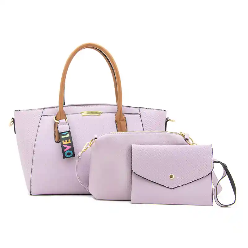 BOLSO DE MANO SET X3 CON TEXTURA LATERAL, INCLUYE BANDOLERA Y CARTERA PARA DOCUMENTOS, CON CARGADERA DE MANO COLOR EN CONTRASTE Y LLAVERO DECORATIVO, ELABORADO EN SINTETICO Y FORRO INTERNO EN TELA, GARANTIA DE 2 MESES DIRECTAMENTE CON EL VENDEDOR EN CIERRES, HERRAJES Y COSTURAS