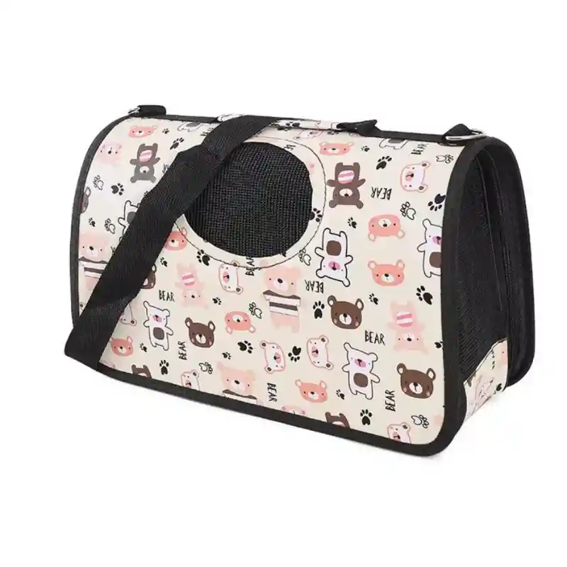 Práctico y cómodo bolso guacal transportador para mascotas, con tierno diseño de ositos. Ideal para transportar perros pequeños o gatos de forma segura durante paseos, viajes o visitas al veterinario. Cuenta con ventanas de ventilación, que permiten una adecuada circulación de aire para mayor comodidad de la mascota. Además, su estructura plegable con cierres facilita guardarlo cuando no está en uso y transportarlo con mayor facilidad. ✨ Características: Diseño decorativo de ositos Ventanas de ventilación para mejor circulación de aire Plegable para fácil almacenamiento Sistema de cierres para mayor seguridad Ideal para perros pequeños y gatos 📏 Medidas aproximadas: Alto: 26 cm Largo / Profundidad: 44 cm Ancho: 22 cm Perfecto para transportar a tu mascota de manera cómoda, segura y con un diseño adorable.