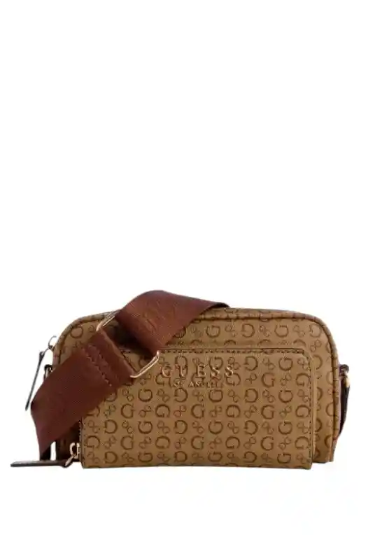 Bolso Guess crossbody 100% Original, nuevo importado. Características: Bolso bandolera de lona revestida con efecto piel Estampado de logotipo por toda la superficie Herrajes en tono dorado y emblema del logotipo. Forro interior y bolsillos. Correa de lona desmontable para el hombro Cierre con cremallera superior Color marrón con combinaciones doradas. Medidas: 20, 3 cm de ancho x 10,8 cm de alto x 7 cm de profundidad.
