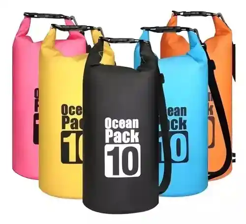 BOLSA IMPERMEABLE DE 5 LITROS • Alta calidad, resistente a raspaduras. • Compresible y fácil de transportar. • Ideal para camping, kayak, senderismo y actividades al aire libre. • Tela impermeable que mantiene los artículos secos y protegidos. • Protección contra polvo, agua, nieve y lluvia. • Lavable y de uso duradero. • Enrollable o plegable para ahorro de espacio y portabilidad. Bolsa Seca Tula Impermeable para Deportes Acuáticos 5L • Almacena dispositivos electrónicos y objetos sensibles al agua de manera segura. • Apropiada para uso en paseos en botes o lanchas, caminatas y excursiones en entornos acuáticos. • Ligera y plegable para un transporte y almacenamiento sencillo. • Puede servir como dispositivo flotante en situaciones de emergencia si se llena de aire.