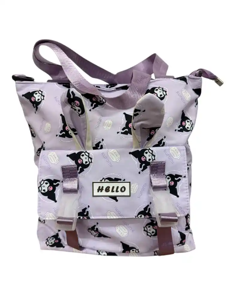 Bolso grande kuromi impermeable, forrado por dentro de gran capacidad, con cierre y cordón adaptable, ademas tiene un bolsillo delantero para mayor comodidad de organizar todo lo que necesites. Medidas 30 cms x 28 cms