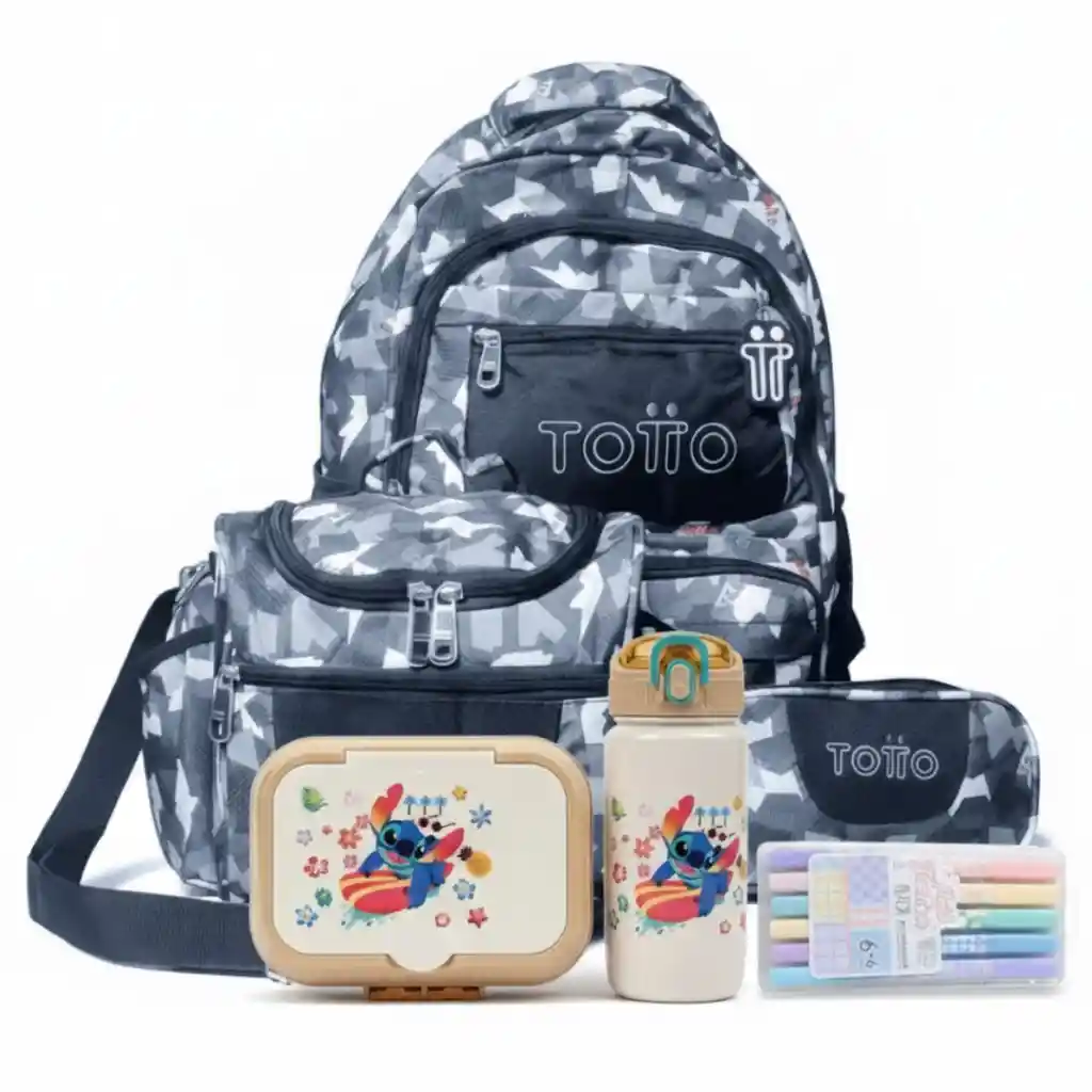 Combo Escolar Stitch – Funcionalidad, Estilo y Organización Este combo escolar está diseñado para acompañar el día a día con practicidad, organización y un diseño encantador. Ideal para estudiantes que buscan llevar todos sus útiles, alimentos y accesorios de forma cómoda, segura y con un estilo divertido inspirado en Stitch. Es perfecto para el colegio, actividades extracurriculares o uso diario. ¿Qué incluye este combo? 🧳 Equipaje y Almacenamiento Morral Principal: Bolso de tamaño estándar con diseño único y llamativo. Cuenta con un compartimento principal amplio para libros y cuadernos, además de un bolsillo frontal grande donde resalta el diseño decorativo. Ideal para una organización práctica durante la jornada escolar. Lonchera de Tela: Lonchera a juego con el morral. Fabricada en tela resistente, con correa ajustable para llevar al hombro y un compartimento principal espacioso para transportar los alimentos. No es térmica. Cartuchera: Estuche alargado con el mismo patrón del set. Perfecta para organizar lápices, colores, marcadores y útiles escolares de uso diario. 🍱 Accesorios de Alimentación – Temática Stitch Termo: Envase en tono crema con diseño colorido de Stitch surfeando. Incluye tapa de seguridad con cierre hermético en color café y detalles en tono turquesa. Ideal para bebidas frías o a temperatura ambiente. Portacomidas (Lonchera Plástica): Recipiente rectangular en color arena/crema con ilustración de Stitch en la tapa. Mantiene la merienda protegida y es perfecto para llevar dentro de la lonchera de tela. ✏️ Útiles de Escritura Set de Resaltadores: Estuche transparente que incluye 6 resaltadores en tonos pastel: amarillo, naranja, rosa, morado, azul y verde. Ideales para organizar y destacar apuntes escolares. Especificaciones Técnicas: Cantidad de piezas: 6 artículos Tipo de combo: Escolar / Uso diario Material del morral: Tela resistente Material de la lonchera: Tela Material del portacomidas: Plástico Tipo de termo: Botella con tapa hermética Cantidad de resaltadores: 6 unidades Uso recomendado: Colegio, estudio, actividades diarias Dimensiones Aproximadas: Morral: Alto: 42 cm Ancho: 30 cm Profundidad: 14 cm Lonchera de tela: Alto: 22 cm Ancho: 20 cm Profundidad: 12 cm Cartuchera: Largo: 20 cm Diámetro: 7 cm Termo: Alto: 22 cm Diámetro: 7 cm Portacomidas: Largo: 18 cm Ancho: 13 cm Alto: 6 cm Garantía Este producto cuenta con 30 días de garantía por defectos de fabricación. Política de Retracto Aplica el derecho de retracto dentro de los 5 días hábiles posteriores a la entrega. El producto debe devolverse sin uso, en perfecto estado y con su empaque original intacto. Notas Importantes • Para aplicar garantía o retracto se deben enviar fotos y/o videos que evidencien claramente el estado del producto. • La garantía no cubre daños ocasionados por golpes, humedad, mal uso o manipulación indebida. • El diseño, colores o presentación de los resaltadores y accesorios pueden variar según disponibilidad de inventario, manteniendo siempre la calidad del producto.