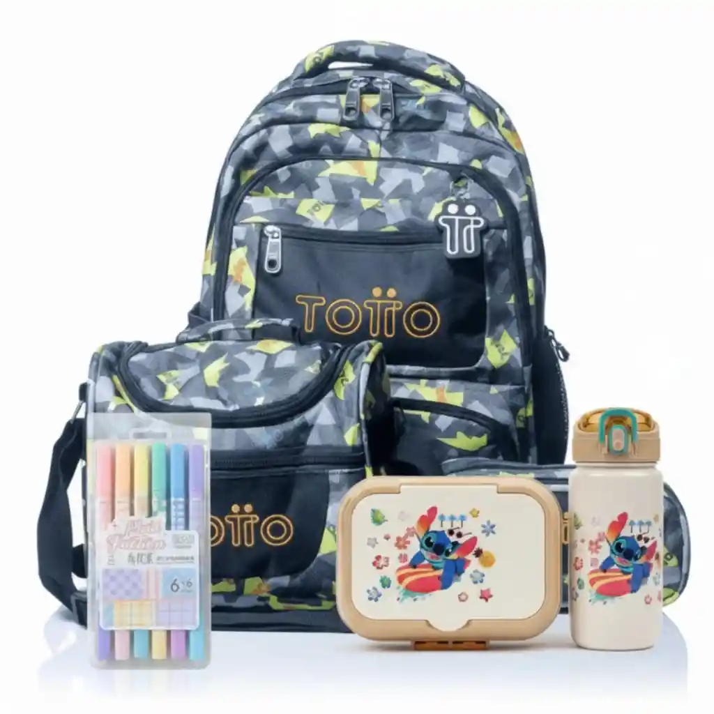 Combo Escolar Stitch – Funcionalidad, Estilo y Organización Este combo escolar está diseñado para acompañar el día a día con practicidad, organización y un diseño encantador. Ideal para estudiantes que buscan llevar todos sus útiles, alimentos y accesorios de forma cómoda, segura y con un estilo divertido inspirado en Stitch. Es perfecto para el colegio, actividades extracurriculares o uso diario. ¿Qué incluye este combo? 🧳 Equipaje y Almacenamiento Morral Principal: Bolso de tamaño estándar con diseño único y llamativo. Cuenta con un compartimento principal amplio para libros y cuadernos, además de un bolsillo frontal grande donde resalta el diseño decorativo. Ideal para una organización práctica durante la jornada escolar. Lonchera de Tela: Lonchera a juego con el morral. Fabricada en tela resistente, con correa ajustable para llevar al hombro y un compartimento principal espacioso para transportar los alimentos. No es térmica. Cartuchera: Estuche alargado con el mismo patrón del set. Perfecta para organizar lápices, colores, marcadores y útiles escolares de uso diario. 🍱 Accesorios de Alimentación – Temática Stitch Termo: Envase en tono crema con diseño colorido de Stitch surfeando. Incluye tapa de seguridad con cierre hermético en color café y detalles en tono turquesa. Ideal para bebidas frías o a temperatura ambiente. Portacomidas (Lonchera Plástica): Recipiente rectangular en color arena/crema con ilustración de Stitch en la tapa. Mantiene la merienda protegida y es perfecto para llevar dentro de la lonchera de tela. ✏️ Útiles de Escritura Set de Resaltadores: Estuche transparente que incluye 6 resaltadores en tonos pastel: amarillo, naranja, rosa, morado, azul y verde. Ideales para organizar y destacar apuntes escolares. Especificaciones Técnicas: Cantidad de piezas: 6 artículos Tipo de combo: Escolar / Uso diario Material del morral: Tela resistente Material de la lonchera: Tela Material del portacomidas: Plástico Tipo de termo: Botella con tapa hermética Cantidad de resaltadores: 6 unidades Uso recomendado: Colegio, estudio, actividades diarias Dimensiones Aproximadas: Morral: Alto: 42 cm Ancho: 30 cm Profundidad: 14 cm Lonchera de tela: Alto: 22 cm Ancho: 20 cm Profundidad: 12 cm Cartuchera: Largo: 20 cm Diámetro: 7 cm Termo: Alto: 22 cm Diámetro: 7 cm Portacomidas: Largo: 18 cm Ancho: 13 cm Alto: 6 cm Garantía Este producto cuenta con 30 días de garantía por defectos de fabricación. Política de Retracto Aplica el derecho de retracto dentro de los 5 días hábiles posteriores a la entrega. El producto debe devolverse sin uso, en perfecto estado y con su empaque original intacto. Notas Importantes • Para aplicar garantía o retracto se deben enviar fotos y/o videos que evidencien claramente el estado del producto. • La garantía no cubre daños ocasionados por golpes, humedad, mal uso o manipulación indebida. • El diseño, colores o presentación de los resaltadores y accesorios pueden variar según disponibilidad de inventario, manteniendo siempre la calidad del producto.