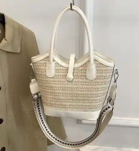 Bolso manos libres para dama en color blanco Material: Cuero sintético pu Medidas/ Largo 22cm - Alto: 20cm