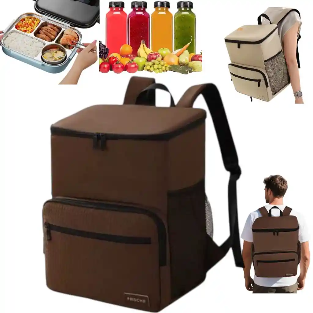 Mochila de almuerzo portátil con fiambrera Mochila aislante y refrigerada y Termica . Buscas una lonchera con mucho espacio y comodidad es la perfecta organiza todo lo que necesites Tus porta comidas,bebidas,frutas,vajilla y llevala donde quieras mas practico y facil . Mochila de almuerzo impermeable reutilizable adecuada para llevar tus alimentos preparaciones ,trabajo,salidas,estudio,picnic,etc.
