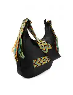 Manos libres negro Macoly, 100% en cuero, con chumbe o gasa tejida a mano en crochet. Detalles alusivos a la marca y finas costuras visibles. Tiene compartimiento amplio, tiene organizadores y bolsillo interno, bolsillo posterior con cremallera. En el frente tiene un adorno de gasa tejida a mano y correa chumbe manos libres. Sus medidas son alto 27 cm, ancho 40 cm y fondo 7 cm. EL COLOR DEL TEJIDO PUEDE VARIAR DEBIDO A QUE ES ELABORADO A MANO Producto Colombiano