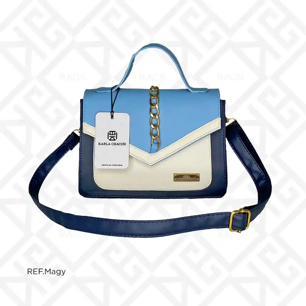 "Si buscas un bolso elegante y versátil que se adapte a tu estilo de vida, no busques más allá del bolso Magy de Karla Chacón. Con su doble función y colores rosa, lila y azul, este bolso es perfecto para cualquier ocasión, desde la oficina hasta una cena formal. ¡Obtén el tuyo hoy mismo y siente la comodidad y sofisticación que ofrece!" - KARLA CHACON - Marca Colombiana - Nuestros productos están disponibles para ENVÍO INMEDIATO. - Nuestra garantia es de UN MES. - Colores disponibles: Azul, Rosa y Lila - MATERIAL: Esta fabricado en materiales sintéticos muy resistentes y de larga durabilidad, nunca se pelan, somos CRUELTYFREE no manejamos productos de pieles animales. – Fabricado: Cucuta, Colombia. – Material: Sintético resistente, no se pela. – Tamaño: Mide 22 cm de ancho por 15cm de alto – Posee cremallera/cierre. – Posee Correa larga ajustable. – Un bolsillo interno con cremallera/cierre – Se puede lavar con agua y jabón. – Evitar doblarlo. – Mantener el producto alejado de tintas como la de lapiceros, ya que por la porosidad del material estas manchas pueden no quitar. – Con el pasar el tiempo los herrajes pueden perder un poco su brillo, puede aplicar crema brilla metal con un paño seco para dejarlos como nuevos. – Evitar el exceso de peso.