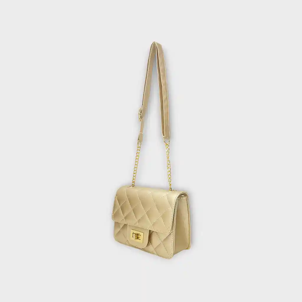 Diseño elegante y minimalista lo hace perfecto para llevar tus esenciales con glamour, sobriedad y estilo. Accesorio de moda imprescindible en tu armario. MATERIALES Exterior: Sintético Interior: Textil MEDIDAS 20 cm de largo 13 cm de alto 06 cm de ancho UTILIDAD Compartimiento interno con cierre Posee un bolsillo sub*interno con cierre Posee solapa con broche de seguridad Correa/Cargadera ajustable con terminaciones en cadena