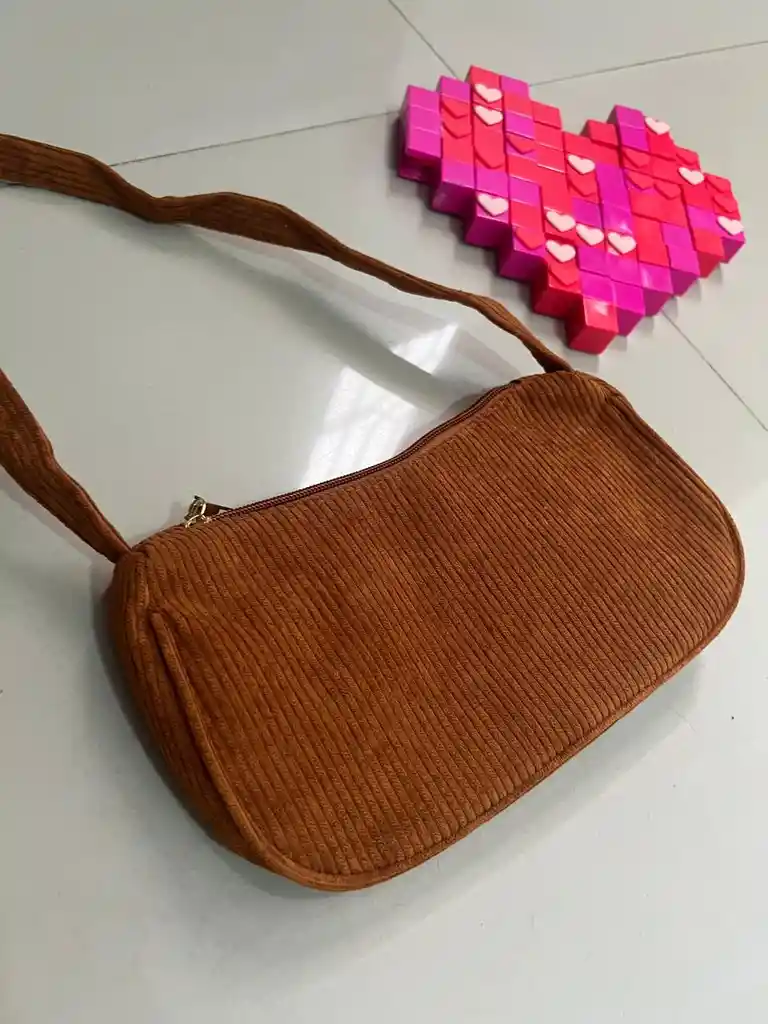 Bolso marron con cierre de cremallera, forro poliester