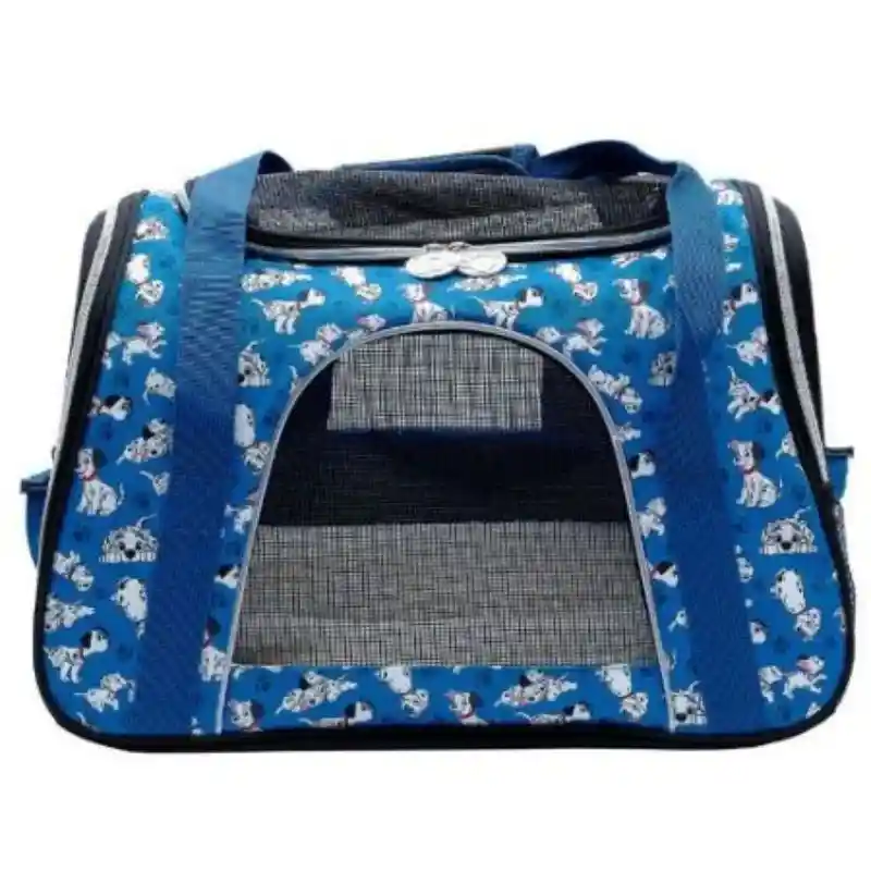 Bolso de 11" con un compartimento principal y dos bolsillos laterales. Además, cuenta con cubierta y hebilla de plástico. Es ideal para que tu peludo te acompañe en el día a día.