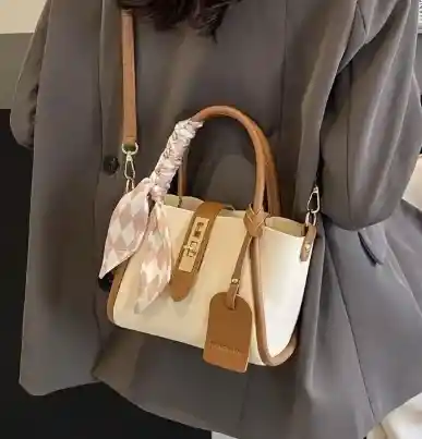 Bolso manos libres para dama en color miel con crema Material: Cuero sintético pu Medidas/ Largo 20cm - Alto: 15cm