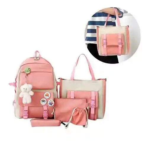 5 Piezas Mochila Moda Bolso Y incluye set De Bolsos y cosmetiqueras para llevar todas tue pertenecias bien organizadas y comodo ,moda ,estilo 2024🥳✅