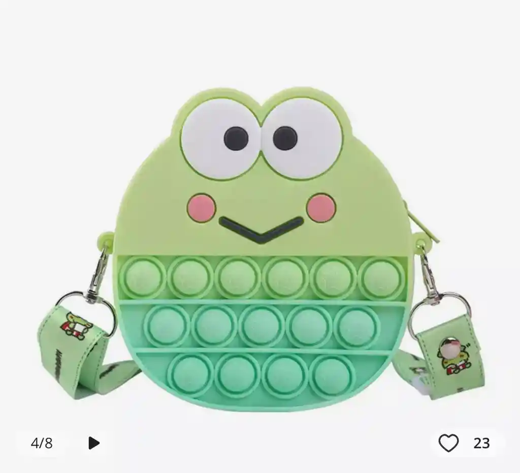 Somos Danny Toys, ofrecemos bolso monedero pop It. Marca: Q UNCLE. Medidas: Sapo: 14cm x 13cm x 4cm.