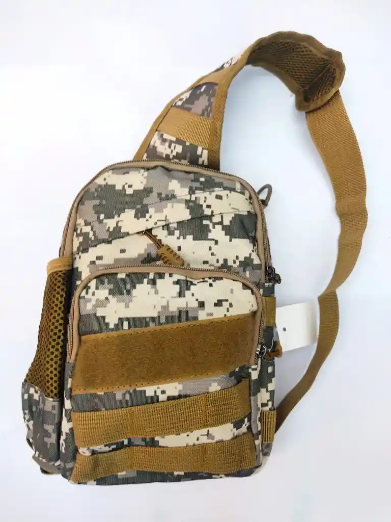 Bolso Morral Manoslibres Camuflado Pequeño - Pechera para hombre mano libres , excelente material - Esta fabricado en materiales sintéticos resistentes y de larga durabilidad. - Posee cremalleras/cierres de alta calidad. - 3 Bolsillos + bolsillo lateral - velcro y resortes en el frente para colocar anzuelos o lo que desees MEDIDAS 30 ALTO X 20 ANCHO x 6 PROFUNDIDAD
