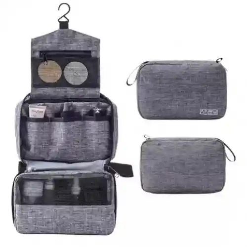 Organiza todo tu aseo personal en un solo lugar, de forma práctica y segura. Este neceser de viaje colgante es ideal para mantener ordenados tus productos de higiene y cuidado personal cuando viajas, vas al gimnasio o necesitas practicidad en casa. Características principales: • Diseño colgante con gancho resistente para mayor comodidad • Múltiples compartimientos internos para mejor organización • Bolsillos con cierre para mayor seguridad • Espacios en malla que permiten ver fácilmente el contenido • Material resistente, liviano y fácil de limpiar • Diseño plegable que ahorra espacio en la maleta Dimensiones aproximadas: • Alto: 23 cm • Ancho: 15 cm • Profundidad: 7 cm ¿Qué puedes guardar? • Shampoo, acondicionador y jabón • Cepillo y crema dental • Maquillaje • Desodorante • Máquina de afeitar • Perfumes pequeños • Accesorios personales Perfecto para viajes, salidas de fin de semana, gimnasio o uso diario. Mantén todo organizado, protegido y siempre a la mano sin desorden en tu maleta. Si te gusta viajar con todo en orden, este organizador es un básico que no puede faltar.