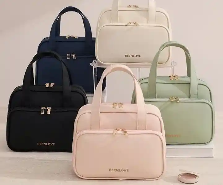 Este bolso organizador BEENLOVE es el compañero ideal para tus días. Su diseño moderno, disponible en colores suaves y elegantes, combina estilo y funcionalidad a la perfección. Cuenta con compartimentos amplios y bien distribuidos para guardar maquillaje, skincare, perfumes, brochas, accesorios y todo lo que necesitas llevar contigo. Su material resistente, cremalleras doradas y acabado delicado le dan un toque premium, mientras que su interior espacioso mantiene cada producto en su lugar sin desorden. Perfecto para viajes, uso diario o como bolso de belleza profesional. ✔ Compartimentos amplios y organizados Material resistente y fácil de limpiar Estilo elegante y moderno Ideal para maquillaje, cuidado personal y accesorios Un bolso práctico, hermoso y pensado para quienes aman verse y sentirse organizadas