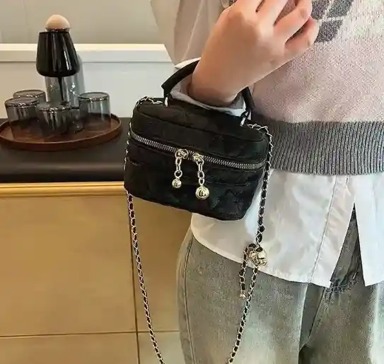 Bolso en cuero sintetico pu, con 1 compartimiento. -Capacidad pequeño Medidas: ALTO: 10CM LARGO: 15CM ANCHO: 8CM