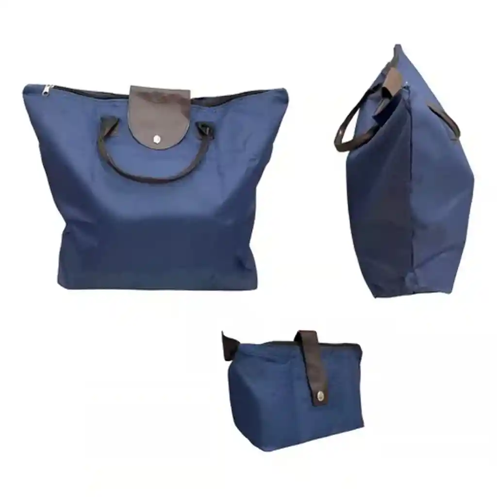 Trae este práctico bolso multiusos de gran espacio en poliester con agarraderas en imitación cuero para llevar todo lo que necesitas en el día. Es plegable, esto hace que no ocupe mucho espacio a la hora de guardar o para llevar dentro de otro bolso. Está fabricado en poliéster, tiene recubrimiento en PVC, tiene mango y broche en cuero sintético o imitación cuero (poliuretano), cierre con broche y cremallera para mayor seguridad. tamaño como se muestra en la fotografia.