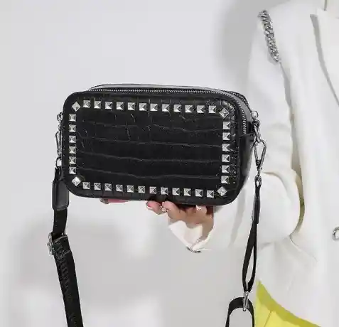 Bolso manos libres para dama en color negro Material: Cuero sintético pu Medidas/ Largo 20cm - Alto: 12cm