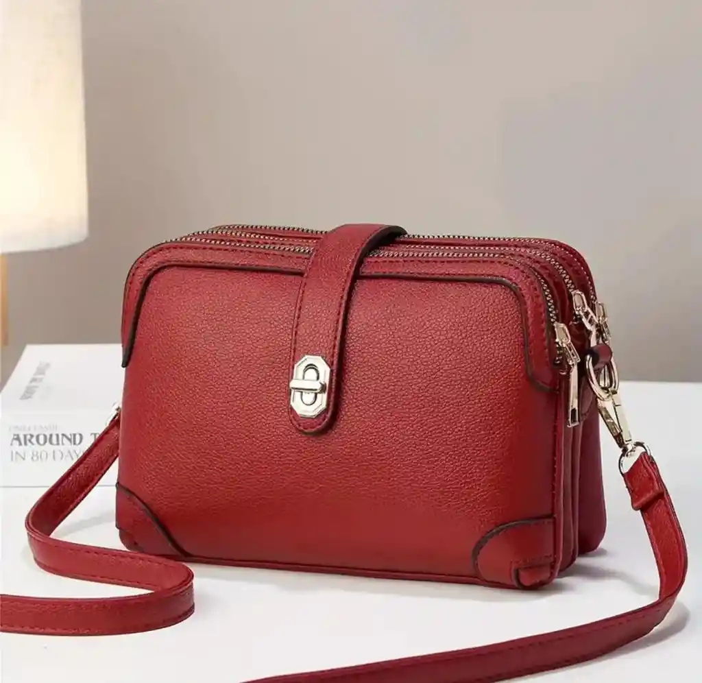 Este bolso en cuero vegano es el accesorio perfecto para cualquier ocasión, viene en un hermoso color rojo, tres compartimientos y cierre negro además de una correa para usarlo como tu gustes.