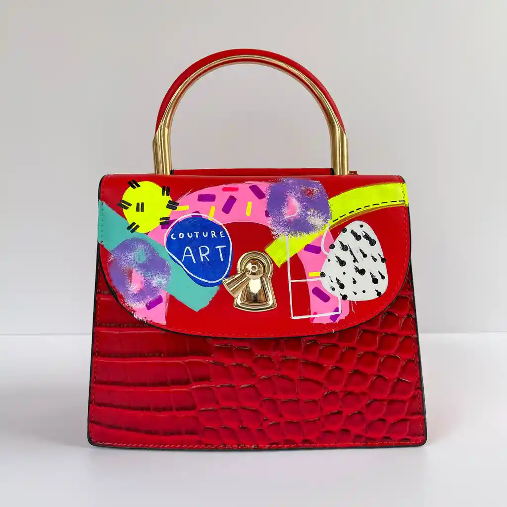 Hermoso bolso rojo pintado a mano por la artista Maria Camila Rodríguez. Dimensiones: 21cm x 18cm x 9cm. Puedes usarlo con la correa larga o la manija corta. Debido a su diseño único y creativo. es perfecto para combinar con todos tus atuendos en cualquier ocasión. negocios. citas. diario. viajes. Te sentirás cómoda y a la moda._______________________________________MATERIAL: Cuero PU. más conocido como cuero vegano. ¡Fue creado para verse y sentirse como cuero sin usar piel de animal porque amamos a los animales! ?? Este producto está libre de crueldad animal._______________________________________La pintura que utiliza la artista es un acrílico especialpara este material. por lo que la pintura es resistente y no se caerá. Incluso cuando se ensucie puedes lavarlo suavemente con agua y jabónsin problema.