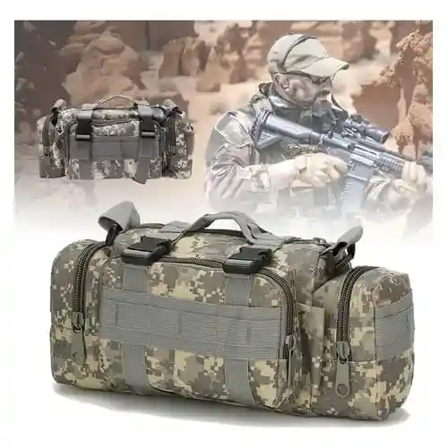 Descripción: ¡Equípate para la aventura con este versátil Bolso Táctico Militar! Diseñado para los amantes del camping, el senderismo y las actividades al aire libre, este morral combina resistencia, funcionalidad y un estilo auténtico. Fabricado con materiales de alta calidad, este bolso está listo para soportar las condiciones más exigentes. Cuenta con múltiples compartimentos y bolsillos con cremallera para mantener tus pertenencias organizadas y seguras. Su sistema MOLLE te permite añadir accesorios adicionales y personalizarlo según tus necesidades. Su diseño ergonómico y correas ajustables te garantizan comodidad durante tus trayectorias, ya sea que lo uses como morral, pechera o cangurera. Disponible en varios colores, incluyendo el popular patrón ACU. Especificaciones: Material: Poliéster de alta resistencia Compartimentos: Principal, frontales, laterales Sistema MOLLE: Sí Dimensiones: 34 cm (largo) x 22 cm (alto) x 12 cm (profundidad)