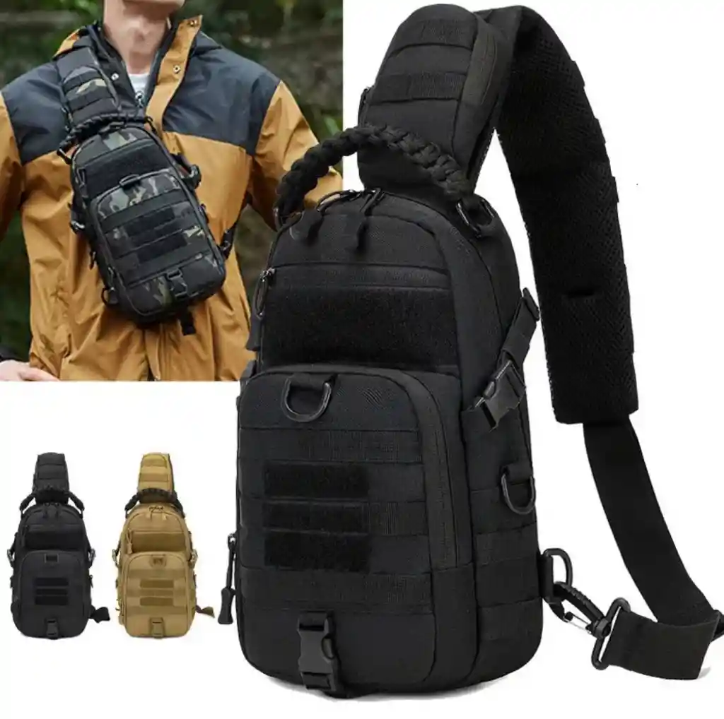 Bolsa de pecho para uso diario o salidas acampar para hombre, riñonera deportiva táctica para hombro al aire libre, senderismo, escalada, ciclismo, pesca, sistema MOLLE, bolsas tipo bandolera.