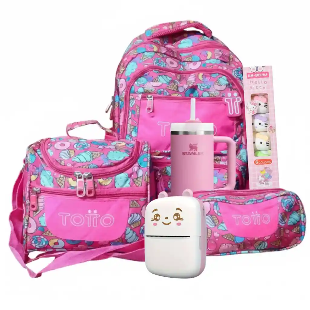 Súper Combo Escolar & Lifestyle – Edición Especial Regreso a Clase Este combo está diseñado para estudiantes y usuarios que buscan funcionalidad, organización y estilo en su día a día. Reúne artículos prácticos para el colegio, la universidad o el trabajo, combinando accesorios escolares con tecnología útil y un diseño moderno. ¿Qué incluye este combo? Set de 3 Bolsos (Genéricos) Conjunto coordinado con diseño estampado, ideal para el uso diario: Mochila: Amplia, resistente y cómoda, perfecta para transportar libros, cuadernos y dispositivos. Lonchera: Con recubrimiento térmico para conservar los alimentos por más tiempo. Cartuchera: Tamaño práctico para organizar útiles escolares y accesorios pequeños. Termo tipo Quencher 40 oz Termo de gran capacidad con asa y pitillo, ideal para mantener bebidas frías durante largas jornadas. Mini Impresora Térmica Portátil Impresora compacta que funciona sin tinta. Permite imprimir notas, recordatorios, etiquetas, imágenes o stickers directamente desde el celular mediante conexión inalámbrica. Set de Resaltadores (5 unidades) Marcadores resaltadores en colores surtidos, ideales para organizar apuntes y material de estudio. Especificaciones del Combo Tipo de combo: Escolar y lifestyle Uso recomendado: Colegio, universidad, oficina y uso diario Cantidad de piezas: 6 artículos Materiales: Textil resistente, plástico y componentes electrónicos (según el producto) Conectividad impresora: Inalámbrica (Bluetooth) Impresión: Térmica (no requiere tinta) Dimensiones Aproximadas del Combo (empacado) Alto total: aprox. 45 cm Ancho total: aprox. 32 cm Profundidad total: aprox. 22 cm Beneficios del Producto Solución completa para estudio y organización diaria Ahorro al adquirir varios productos en un solo combo Ideal para estudiantes de todas las edades Tecnología práctica sin necesidad de consumibles Diseño moderno y funcional Perfecto como regalo o para regreso a clases Garantía Este producto cuenta con 30 días de garantía por defectos de fabricación. Política de Retracto Aplica el derecho de retracto dentro de los 5 días hábiles posteriores a la entrega. El producto debe devolverse sin uso, en perfecto estado y con su empaque original intacto. Nota Importante Para aplicar garantía o retracto se deben enviar fotos y/o videos que evidencien claramente el estado del producto. La garantía no cubre daños por golpes, humedad, mal uso o manipulación indebida.