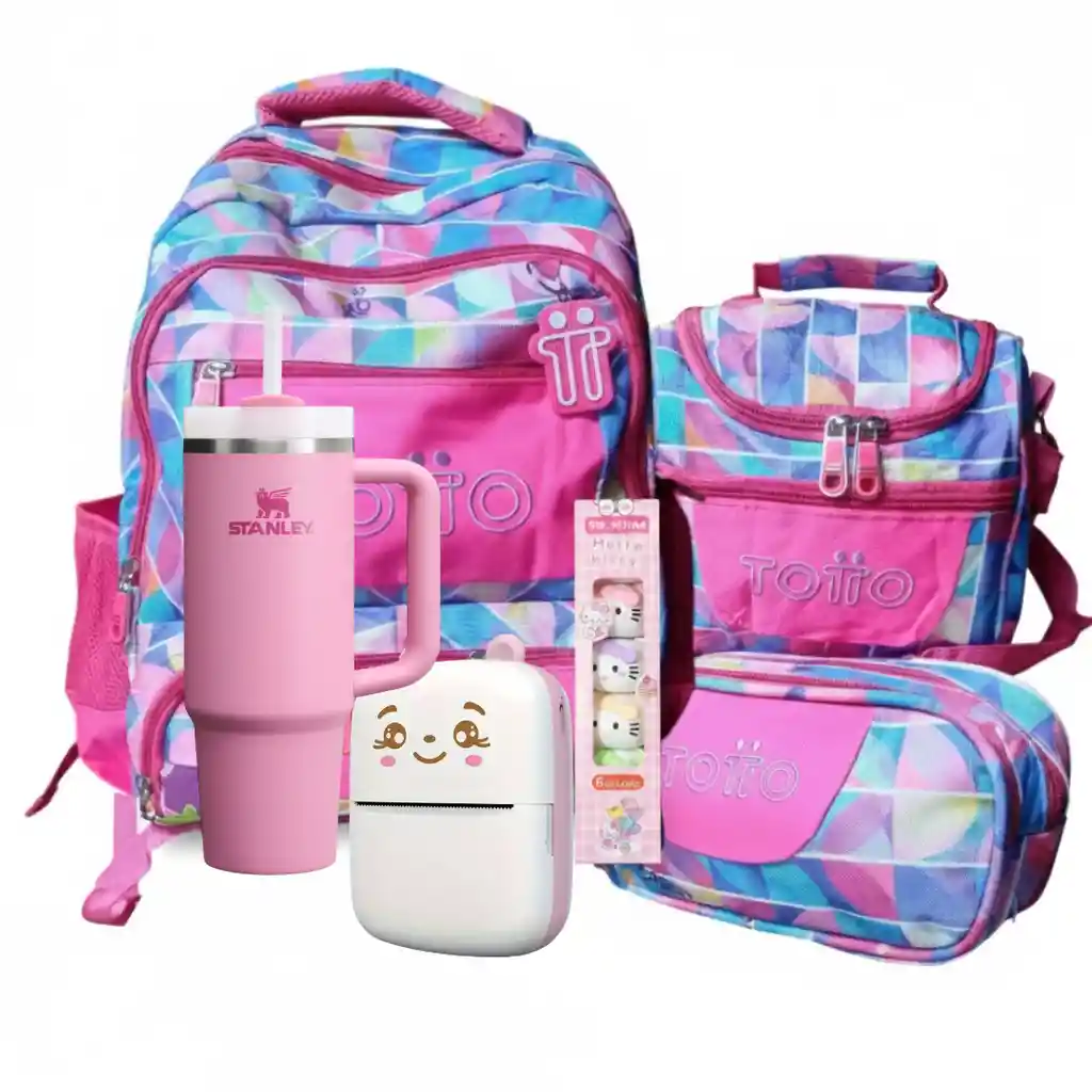 Súper Combo Escolar & Lifestyle – Edición Especial Regreso a Clase Este combo está diseñado para estudiantes y usuarios que buscan funcionalidad, organización y estilo en su día a día. Reúne artículos prácticos para el colegio, la universidad o el trabajo, combinando accesorios escolares con tecnología útil y un diseño moderno. ¿Qué incluye este combo? Set de 3 Bolsos (Genéricos) Conjunto coordinado con diseño estampado, ideal para el uso diario: Mochila: Amplia, resistente y cómoda, perfecta para transportar libros, cuadernos y dispositivos. Lonchera: Con recubrimiento térmico para conservar los alimentos por más tiempo. Cartuchera: Tamaño práctico para organizar útiles escolares y accesorios pequeños. Termo tipo Quencher 40 oz Termo de gran capacidad con asa y pitillo, ideal para mantener bebidas frías durante largas jornadas. Mini Impresora Térmica Portátil Impresora compacta que funciona sin tinta. Permite imprimir notas, recordatorios, etiquetas, imágenes o stickers directamente desde el celular mediante conexión inalámbrica. Set de Resaltadores (5 unidades) Marcadores resaltadores en colores surtidos, ideales para organizar apuntes y material de estudio. Especificaciones del Combo Tipo de combo: Escolar y lifestyle Uso recomendado: Colegio, universidad, oficina y uso diario Cantidad de piezas: 6 artículos Materiales: Textil resistente, plástico y componentes electrónicos (según el producto) Conectividad impresora: Inalámbrica (Bluetooth) Impresión: Térmica (no requiere tinta) Dimensiones Aproximadas del Combo (empacado) Alto total: aprox. 45 cm Ancho total: aprox. 32 cm Profundidad total: aprox. 22 cm Beneficios del Producto Solución completa para estudio y organización diaria Ahorro al adquirir varios productos en un solo combo Ideal para estudiantes de todas las edades Tecnología práctica sin necesidad de consumibles Diseño moderno y funcional Perfecto como regalo o para regreso a clases Garantía Este producto cuenta con 30 días de garantía por defectos de fabricación. Política de Retracto Aplica el derecho de retracto dentro de los 5 días hábiles posteriores a la entrega. El producto debe devolverse sin uso, en perfecto estado y con su empaque original intacto. Nota Importante Para aplicar garantía o retracto se deben enviar fotos y/o videos que evidencien claramente el estado del producto. La garantía no cubre daños por golpes, humedad, mal uso o manipulación indebida.