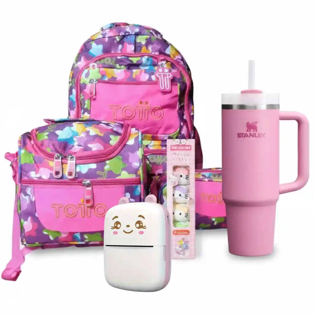 Súper Combo Escolar & Lifestyle – Edición Especial Regreso a Clase Este combo está diseñado para estudiantes y usuarios que buscan funcionalidad, organización y estilo en su día a día. Reúne artículos prácticos para el colegio, la universidad o el trabajo, combinando accesorios escolares con tecnología útil y un diseño moderno. ¿Qué incluye este combo? Set de 3 Bolsos (Genéricos) Conjunto coordinado con diseño estampado, ideal para el uso diario: Mochila: Amplia, resistente y cómoda, perfecta para transportar libros, cuadernos y dispositivos. Lonchera: Con recubrimiento térmico para conservar los alimentos por más tiempo. Cartuchera: Tamaño práctico para organizar útiles escolares y accesorios pequeños. Termo tipo Quencher 40 oz Termo de gran capacidad con asa y pitillo, ideal para mantener bebidas frías durante largas jornadas. Mini Impresora Térmica Portátil Impresora compacta que funciona sin tinta. Permite imprimir notas, recordatorios, etiquetas, imágenes o stickers directamente desde el celular mediante conexión inalámbrica. Set de Resaltadores (5 unidades) Marcadores resaltadores en colores surtidos, ideales para organizar apuntes y material de estudio. Especificaciones del Combo Tipo de combo: Escolar y lifestyle Uso recomendado: Colegio, universidad, oficina y uso diario Cantidad de piezas: 6 artículos Materiales: Textil resistente, plástico y componentes electrónicos (según el producto) Conectividad impresora: Inalámbrica (Bluetooth) Impresión: Térmica (no requiere tinta) Dimensiones Aproximadas del Combo (empacado) Alto total: aprox. 45 cm Ancho total: aprox. 32 cm Profundidad total: aprox. 22 cm Beneficios del Producto Solución completa para estudio y organización diaria Ahorro al adquirir varios productos en un solo combo Ideal para estudiantes de todas las edades Tecnología práctica sin necesidad de consumibles Diseño moderno y funcional Perfecto como regalo o para regreso a clases Garantía Este producto cuenta con 30 días de garantía por defectos de fabricación. Política de Retracto Aplica el derecho de retracto dentro de los 5 días hábiles posteriores a la entrega. El producto debe devolverse sin uso, en perfecto estado y con su empaque original intacto. Nota Importante Para aplicar garantía o retracto se deben enviar fotos y/o videos que evidencien claramente el estado del producto. La garantía no cubre daños por golpes, humedad, mal uso o manipulación indebida.
