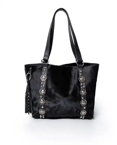 En Cuero Con Pelo de Vaca 100% Vacuno Tono Negro. Conchos de Inspiración Western en Acabado Níquel. Mosquetón Metálico Con Charms. Cierre Con Broche Imán. Para Llevar al Hombro. Boca 48 cm. Construcción en Cuero Vacuno Con Superficie Táctil Rica. Hardware Níquel Que Aporta Carácter Western. Ean- 201H000Neg194007 Plu- 1111133285314.