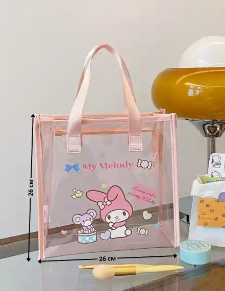Este encantador bolso transparente de My Melody es perfecto para quienes aman el estilo tierno y dulce de Sanrio 🎀💖. Su diseño moderno permite lucir tus accesorios con un toque adorable mientras los mantienes seguros y organizados ✨👜. Ligero y espacioso, es ideal para el día a día, salidas o eventos especiales 🌟💕. ¡Lleva la magia de My Melody contigo a donde vayas! 😍💫 Bolso | Transparente | My Melody | Sanrio | Tierno | Moderno | Ligero | Espacioso | Práctico | Encantador