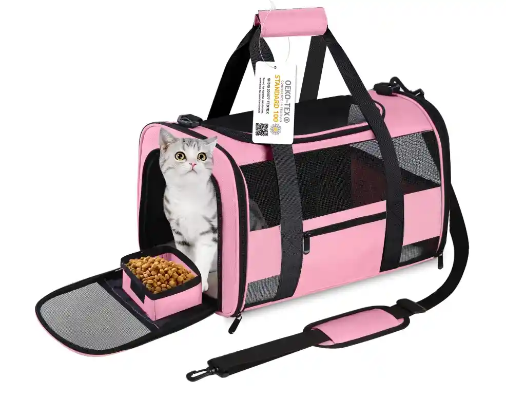 Tamaño de mascotas medianas y pequeñas: el transportador para gatos mide 17 pulgadas de largo x 11 pulgadas de ancho x 11 pulgadas de alto. Se recomienda la carga máxima de 15 libras (15.0 lbs). Tiene certificado OEKO-TEX STANDARD 100, más seguro. Por favor, no elijas el transportador de mascotas basado solo en el peso, también confirma la longitud y la altura de tu mascota (descripción del producto), luego asegúrate de que las mascotas no excedan el límite máximo de peso. Aprobado por aerolíneas: nuestro transportador para perros pequeños se adapta cómodamente debajo de la mayoría de los asientos de ventilación, como American Airlines, Southwest Airlines, Delta Airlines, Jetblue, Alaska Airlines, etc. Además, el transportador suave para perros es perfecto para viajes en el asiento del automóvil, vacaciones, ocio, senderismo, avión, actividades al aire libre, etc. Seguro y duradero: el transportador para gatos rosa está hecho de tela de poliéster duradera, ligera e impermeable. Este transportador para gatos de lados suaves viene con malla de cuatro lados y entrada de tres lados que proporciona muchas aberturas y aire para perros gatos con apertura superior. Con cremalleras en la parte superior y lateral, tu adorable cachorro se puede poner y quitar de nuestro transportador para perros fácilmente. Diseño de tira reflectante: el transportador de mascotas pequeño tiene una acogedora almohadilla de lana de vellón que se puede quitar y lavar a máquina, el lado del transportador para perros tiene un bolsillo con cremallera de almacenamiento que se puede utilizar para almacenar alimentos para tus mascotas. Además, viene con un cuenco plegable para alimentos, tarjeta de identificación para mascotas, tira reflectante, más segura para viajar por la noche, puedes llevar a tu mascota a cualquier lugar y dejar que tu mascota y tú tengan un viaje maravilloso y feliz SOMOS KOBALT STORE