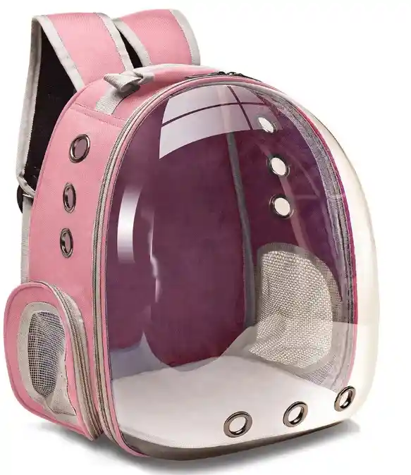 Guacal burbuja transparente para perros y gatos, cuenta con 3 orificios en cada lateral de aproximadamente 2cm de diámetro, para una buena ventilación y circulación de aire. Las correas para la espalda son ajustables y el asa te permite llevarla en la mano si así lo deseas. Ancho: 33 cm Alto: 40 cm Largo: 20 cm