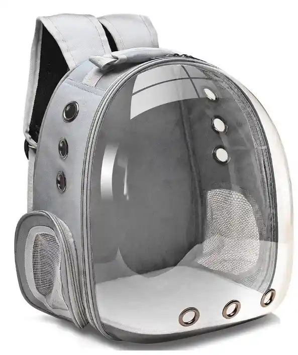 Guacal burbuja transparente para perros y gatos, cuenta con 3 orificios en cada lateral de aproximadamente 2cm de diámetro, para una buena ventilación y circulación de aire. Las correas para la espalda son ajustables y el asa te permite llevarla en la mano si así lo deseas. Ancho: 33 cm Alto: 40 cm Largo: 20 cm
