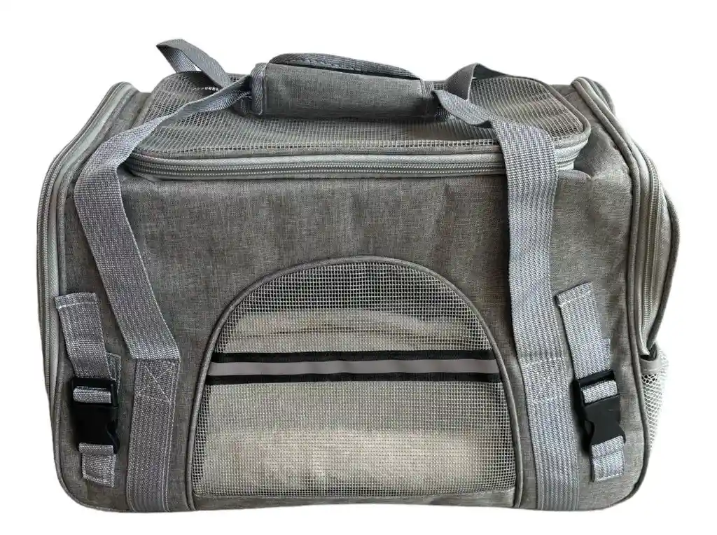 Bolso transportador de viaje para perros y gatos pequeños, cuenta con ventanas de malla en la parte superior y laterales para una buena ventilación y circulación de aire. La correa para el hombro es ajustable y el asa te permite llevarla en la mano si así lo deseas. Ancho: 20 cm Alto: 28 cm Largo: 38 cm