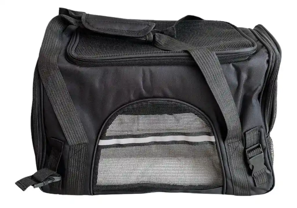 Bolso transportador de viaje para perros y gatos pequeños, cuenta con ventanas de malla en la parte superior y laterales para una buena ventilación y circulación de aire. La correa para el hombro es ajustable y el asa te permite llevarla en la mano si así lo deseas. Ancho: 20 cm Alto: 28 cm Largo: 38 cm