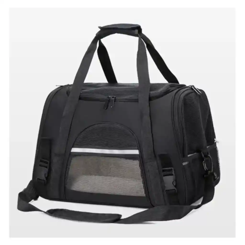 Bolso Transportador Suave para Gatos y Mascotas Morral para Gatos, Ideal para Viajes y SalidasBolsa de Transporte para Mascotas Plegable Comoda y Segura Ideal para gatos y perros pequenos Tamano 44 x 28 x 25 cm Apta para viajes en avion Disenada para cumplir con los requisitos de embarque de la mayoria de aerolineas. Cabe perfectamente debajo del asiento delantero, ideal para llevar a tu mascota contigo en cabina. Multiples entradas y excelente ventilacion Cuenta con 3 accesos superior, frontal y lateral, todos con cremalleras resistentes. Su diseno permite un manejo comodo durante viajes o controles de seguridad. La ventilacion lateral con malla asegura que tu mascota respire con facilidad. Estructura resistente y base acolchada La base firme evita que la bolsa se hunda, brindando estabilidad. Incluye un cojin suave, lavable y absorbente para mayor confort y facil limpieza. Materiales impermeables y a prueba de escapes Fabricada en poliester resistente e impermeable. Con malla antidesgarros, ideal para mascotas inquietas. Incorpora una correa interna con hebilla para sujetar el collar y cremalleras con cierre de seguridad para evitar escapes.