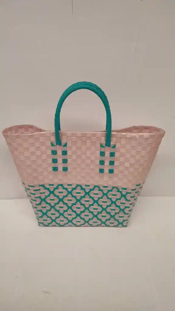 Bolso Elaborado En Zuncho Plástico De Primera Calidad, Ideal Para Playa, Ocasiones Informales. Medidas Ancho 30 cm Alto 32 Alto Incluido Manija 45 cm Fondo 15 cm UNIDADES DISPONIBLES 1