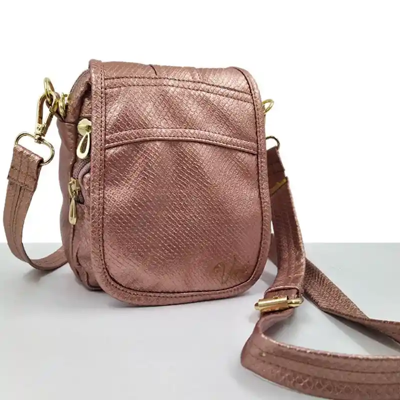 HERMOSO BOLSO TIPO CARRIEL PARA MUJER DISEÑO CORRUGADO Dale un estilo muy personal a tus atuendos con estos hermosos bolsos tipo carriel que puedes llevar con sigo a todas partes, ya que su diseño moderno te permite usarlo tanto casual como formalmente. Elaborado en materiales sintéticos de alta calidad. Fácil de lavar con alcohol. Es muy cómodo, compacto y práctico para llevar todo lo que necesites. Luce casual o formal. Lo puedes usar Colgado ya que tiene correas ajustables a tu tamaño o si lo prefieres, también se puede llevar como cartera en tu mano. Compartimentos: 3 Bolsillos externos. -Color: Oro Rosa -Origen: Hecho en Colombia - Material: Sintético Texturizado - Tamaño: Mide 15 cm de Largo por 17 cm de alto x 9 de Fondo - Herrajes Dorados - Correa ajustable. - Ideal para llevar las cosas básicas como el celular, documento y dinero. Especial para todas las edades.