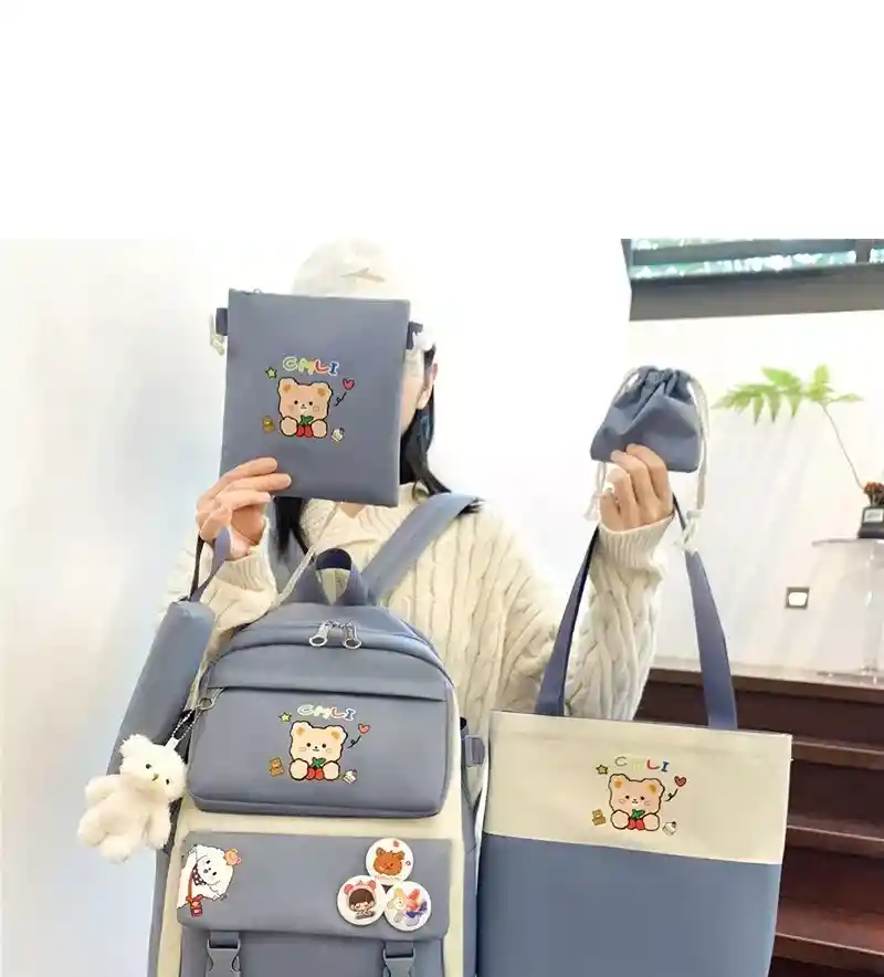 Bolsos en Kit Kawaii x 5 Incluye pines 3 pines (NO INCLUYE PELUCHE) Medidas: MORRAL 42X16 - CARTERA 35X33 - MINI CARTERA 20X21 - CARTUCHERA 7X20 MONEDERO 14X11