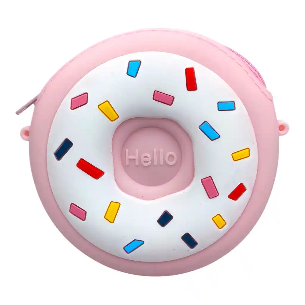 Bolsos en silicona para niñas con forma de dona 🍩✨ Súper suaves, resistentes y fáciles de limpiar. Incluyen correa ajustable con estampados divertidos para colgar al hombro. Disponibles en 4 colores: chocolate, menta, rosado y amarillo. Perfectos para guardar sus tesoros, moneditas o dulces.