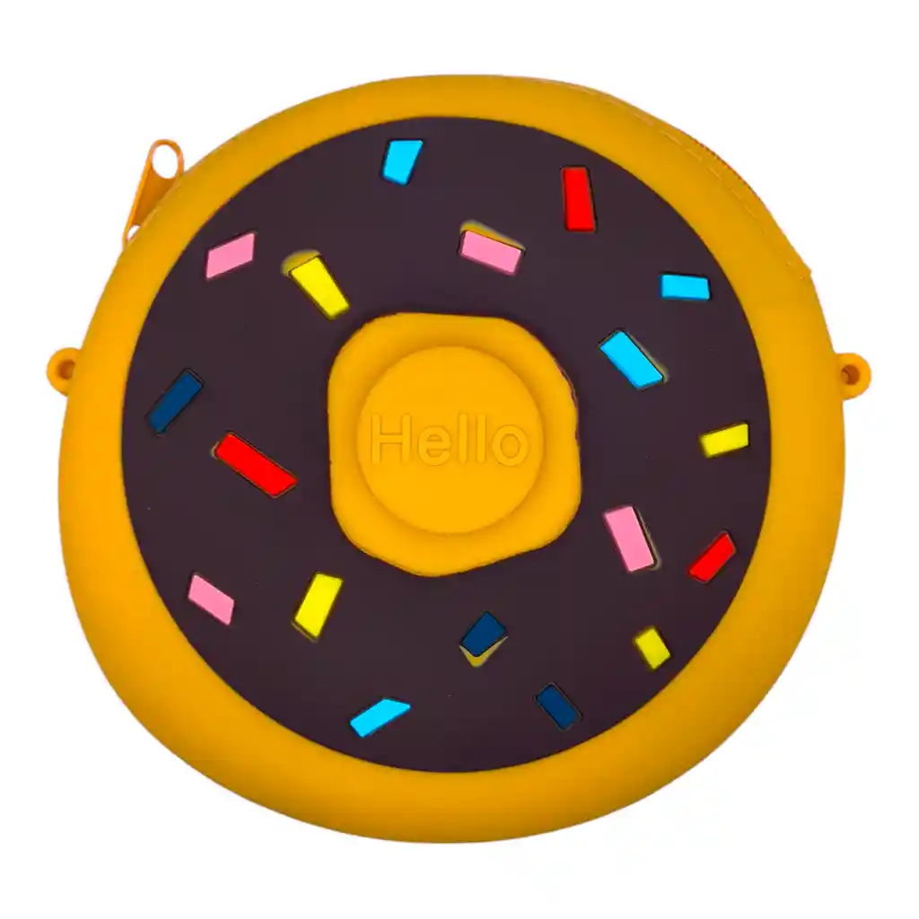 Bolsos en silicona para niñas con forma de dona 🍩✨ Súper suaves, resistentes y fáciles de limpiar. Incluyen correa ajustable con estampados divertidos para colgar al hombro. Disponibles en 4 colores: chocolate, menta, rosado y amarillo. Perfectos para guardar sus tesoros, moneditas o dulces.