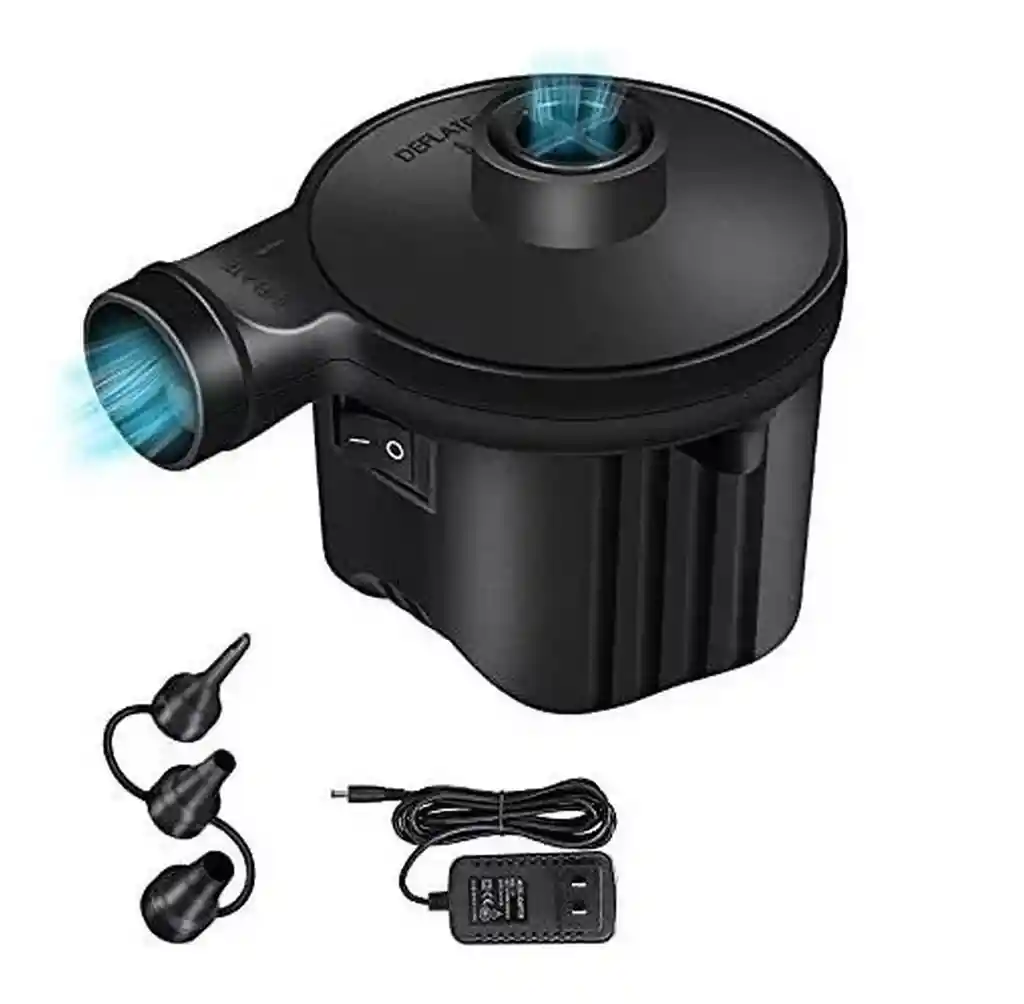 La bomba de aire eléctrica de alta potencia es la solución ideal para inflar y desinflar rápida y fácilmente colchones de aire, cojines inflables, flotadores de piscina y más. Equipada con tres boquillas de diferentes tamaños, se adapta a una amplia variedad de válvulas para un uso versátil. Su diseño compacto y ligero facilita su transporte, mientras que su potente motor garantiza un llenado eficiente en poco tiempo. Compatible con voltajes de 110-220V, es perfecta para el hogar, viajes y actividades al aire libre. Ficha Técnica: Dimensiones: 10.8 cm x 8.7 cm Material: Plastico ABS Voltaje: 110V/240V Potencia: 60W ** _Para defectos de fábrica o retractos: \_Por favor revise el producto apenas lo reciba y antes de usarlo. No aplican ley de retracto o defectos de fábrica luego de usar el producto. Se manejan máximo 5 días para reportar defectos de fábrica (por ejemplo, producto funciona mal, piezas faltantes, rotas, etc). Para hacer efectiva la devolución el producto debe devolverse con el empaque original, el cual debe estar en buen estado, incluir todos los documentos y las partes completas y sin daños.
