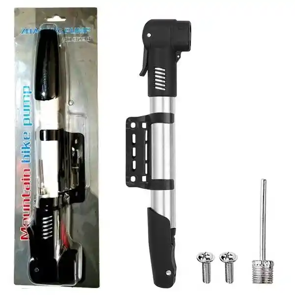 Material: aleación de aluminio + PVC ● Color: plata ● Longitud reducida: 28 x 5 cm ● Longitud expandida: 44 x 8 cm El paquete incluye: ● 1 bomba de bicicleta ● 2 tornillos ● 1 aguja de inyección aire y 1 de inflar accesorios.
