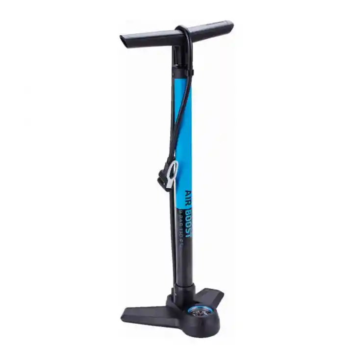 Bomba de piso compacta con manómetro preciso que muestra tanto bar como psi. Se infla a 9 bar / 130 psi. Mango ergonómico tipo "boomerang" para una posición de bombeo natural y una mayor potencia de bombeo. Barril de acero con una longitud total de 62 cm. Cabezal de bomba DualHead y palanca de bloqueo del pulgar. Base compuesta estable con manómetro integrado. Dimensiones en mm (L / W / H): longitud: 620 mm